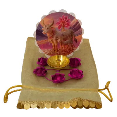 Bring light, positivity, and devotion into your home with this beautifully crafted Diya Gift Set from Metals & Beyond. Designed with a sacred cow backdrop, this diya radiates purity and spiritual charm, making it ideal for pooja rituals, daily prayers, and festive celebrations.
